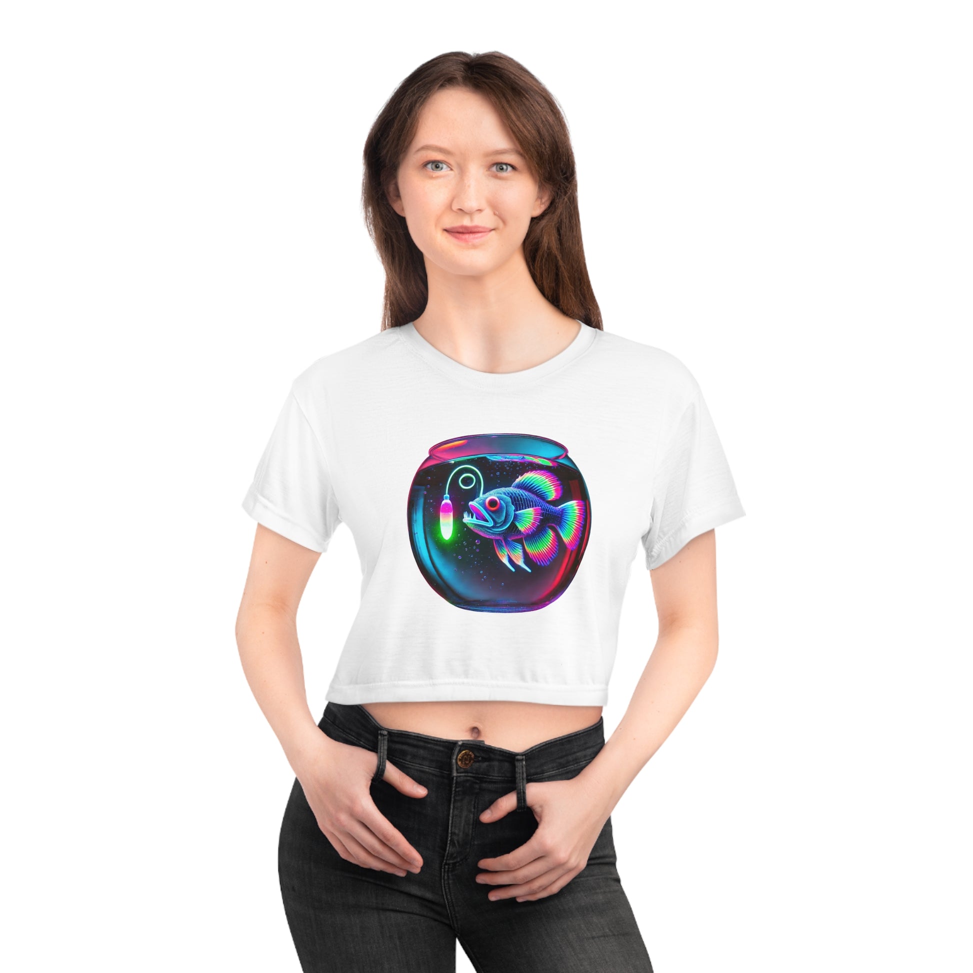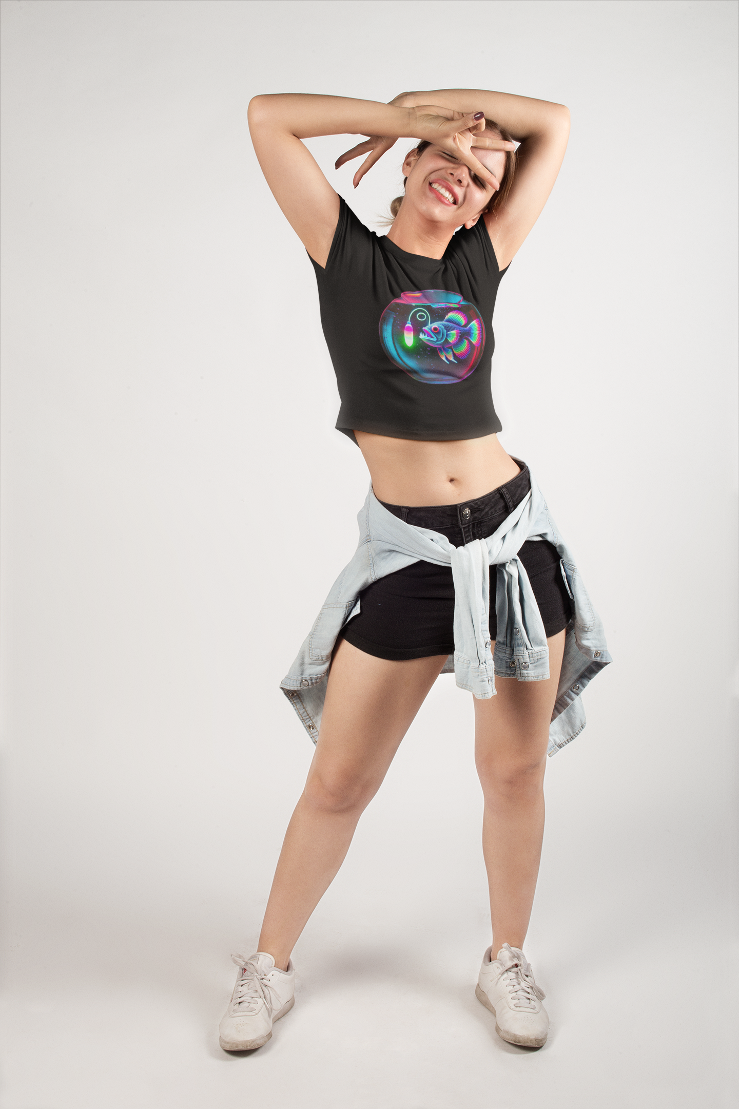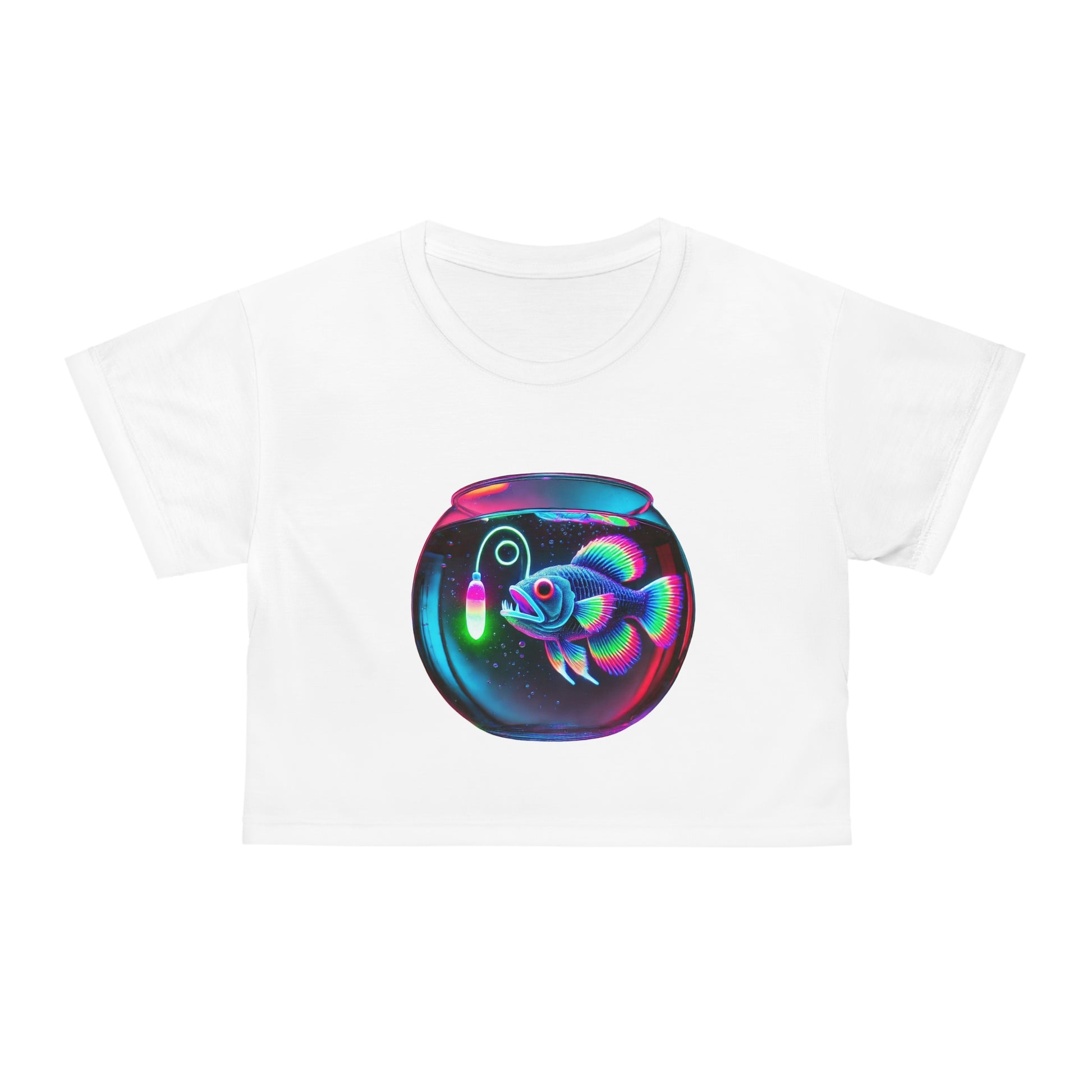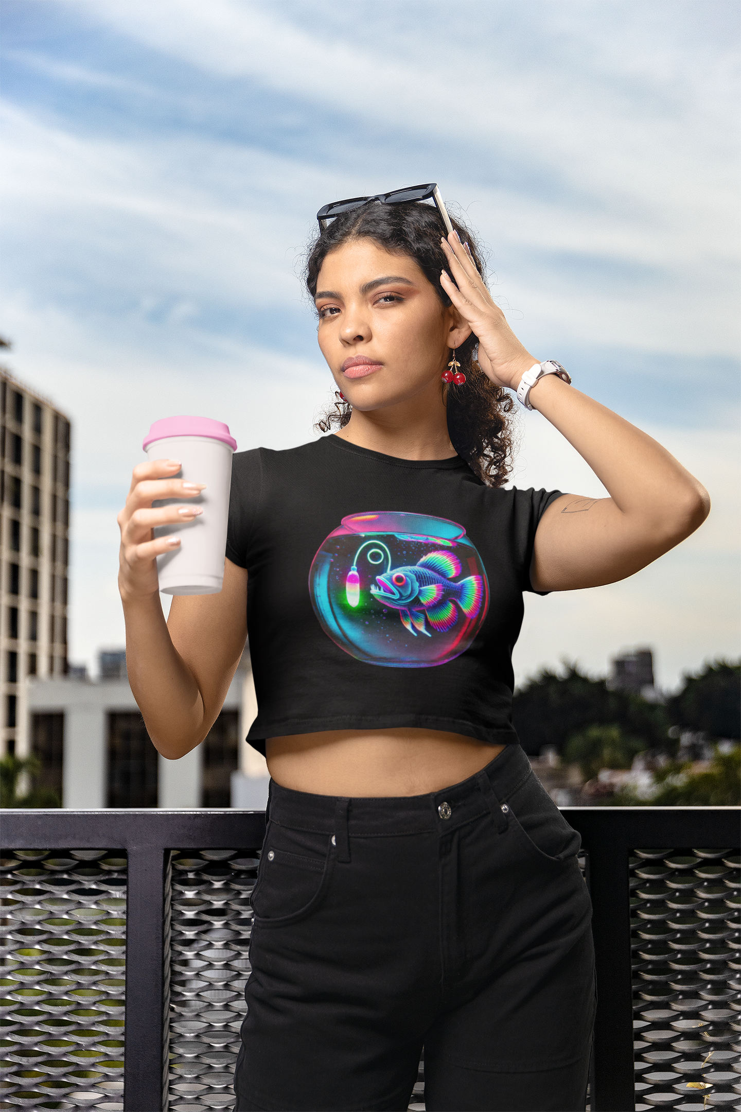 Who said fierce can’t be cute? Meet the Angler Fish in a Bowl crop top — a vibrant, all-over print tee featuring a glowing neon angler fish chilling in its own little fishbowl. It's weird. It's wonderful. It’s totally you. 🐟💡