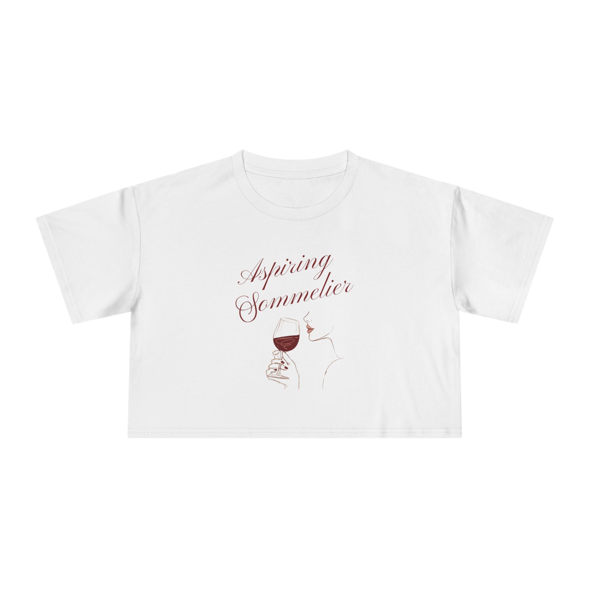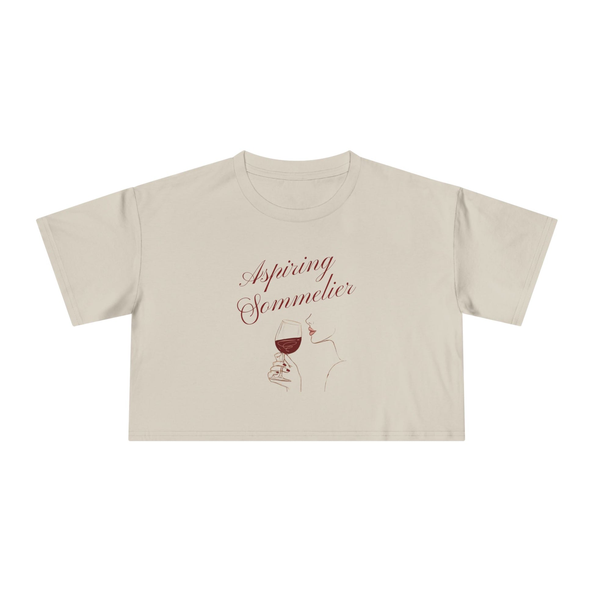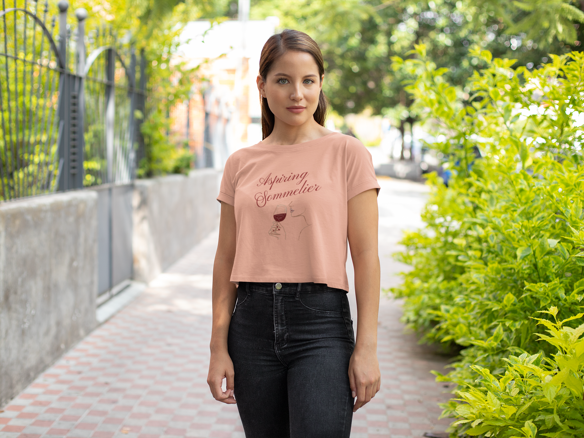 Whether you're sipping merlot or just pretending to know what "tannins" are, the "Aspirning Sommelier" crop top is your new signature pour. The Aspiring Sommelier tee features a clean, feminine illustration of a woman enjoying her glass — because wine tasting is a vibe. 🍇✨