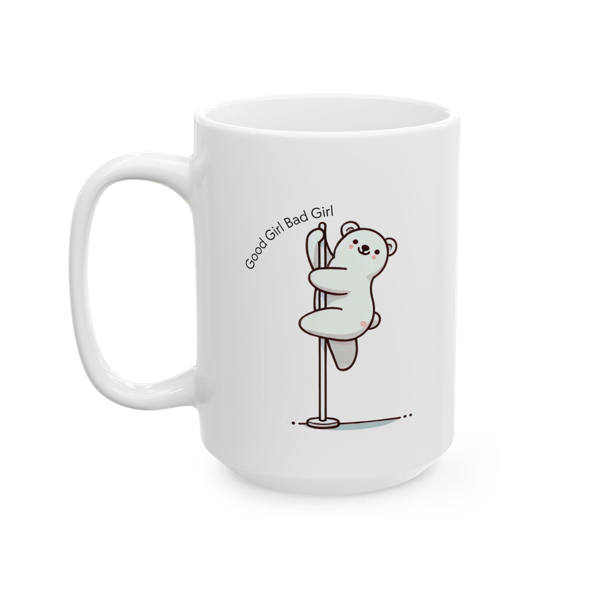 For those who like their coffee hot and their mornings a little wild β meet your new favorite mug. Featuring our cheeky polar bear doing her thing on the pole, this glossy ceramic beauty adds major personality to your sips. Available in 11 oz or 15 oz β depending on how bold you like your brew. βπΎ