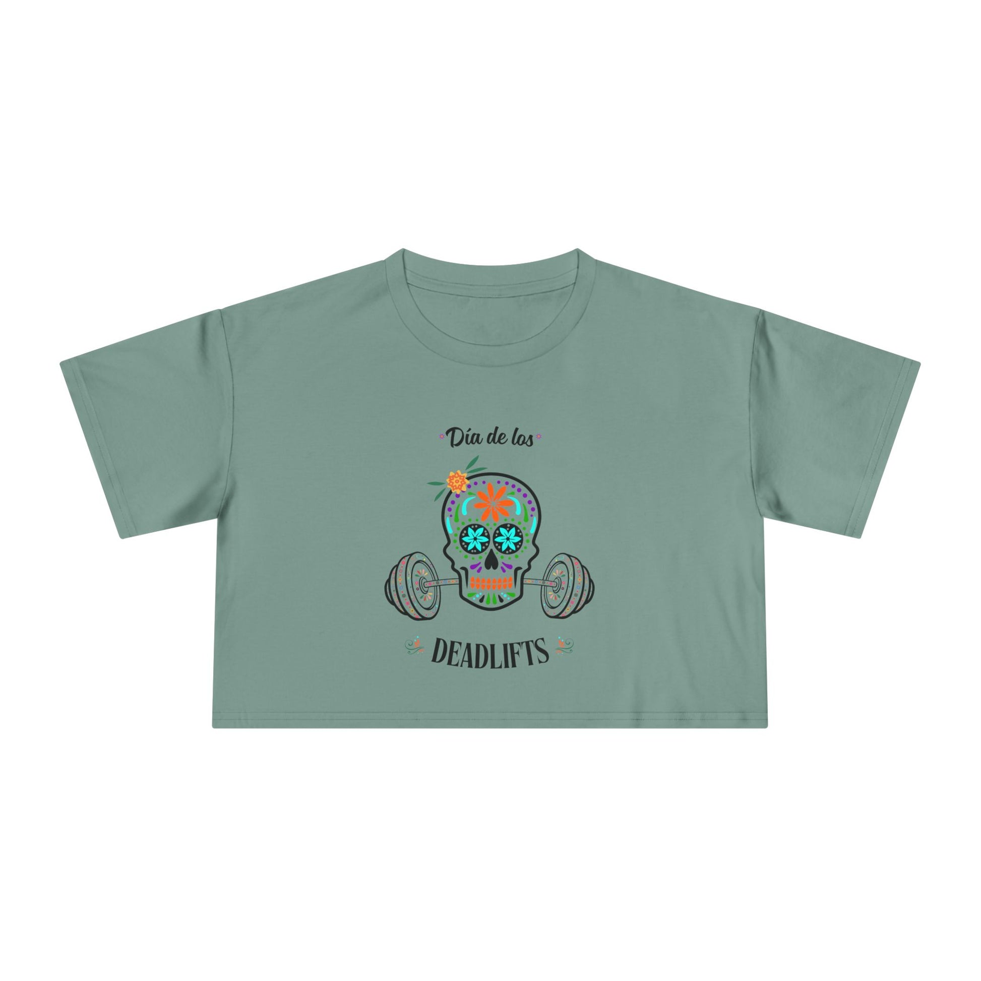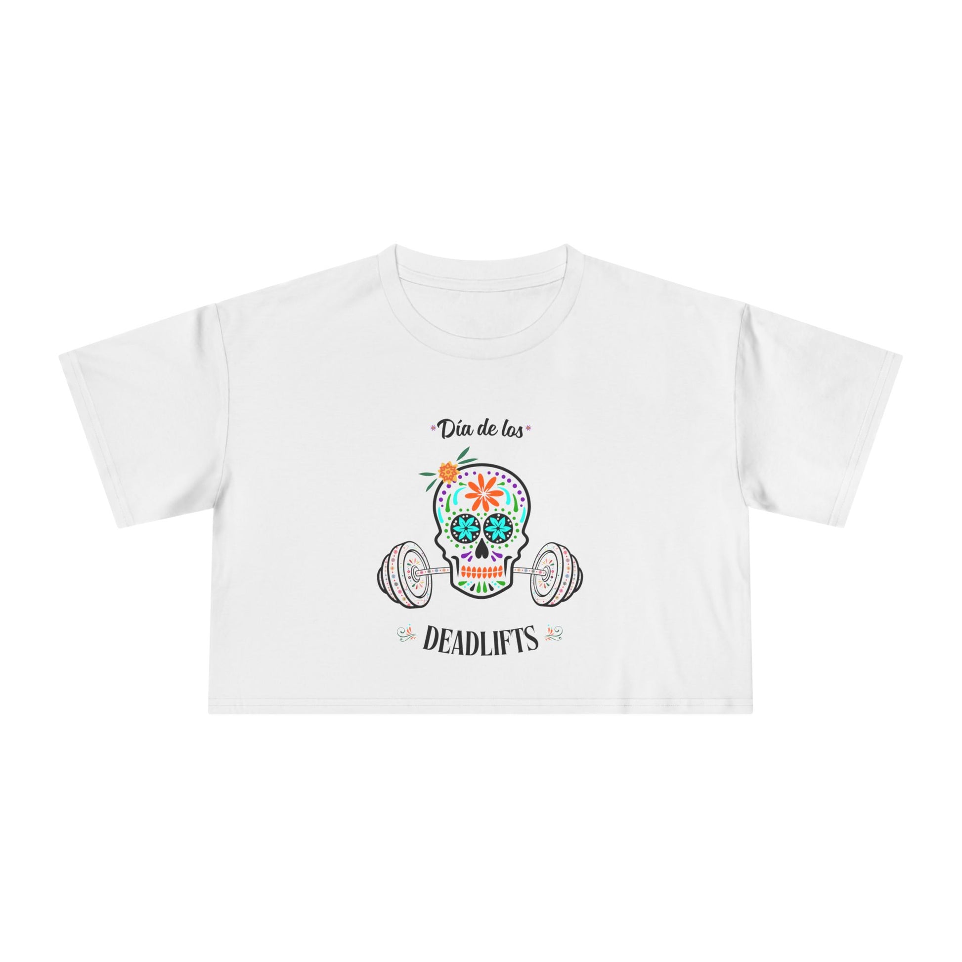 Bold lifts and even bolder looks — the Día de los Deadlifts crop top brings deadlifting to the afterlife with a skull + barbell design dripping in Día de los Muertos flair. Colorful, badass, and unlike anything else in your gym wardrobe, this top celebrates strength with spirit.