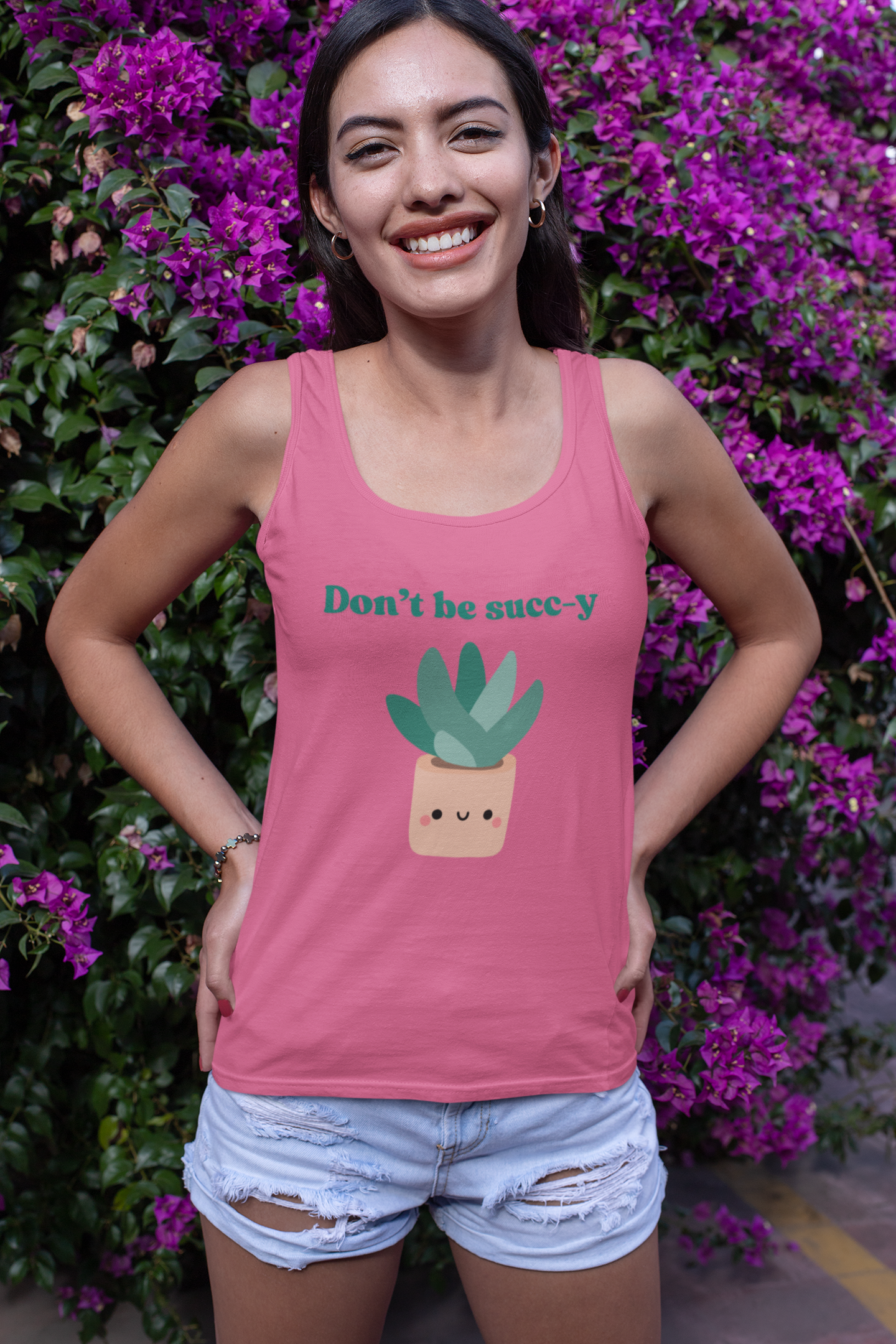Whether you're nurturing your business, your boundaries, or your houseplants — this one’s for the babes who keep it cute and resilient. 🌵🖤 Featuring the same playful “Don’t Be Succ-y” design from the favorite everyday crop top, now on a comfy, lightweight tank made for moving through your day with confidence (and a little sass).