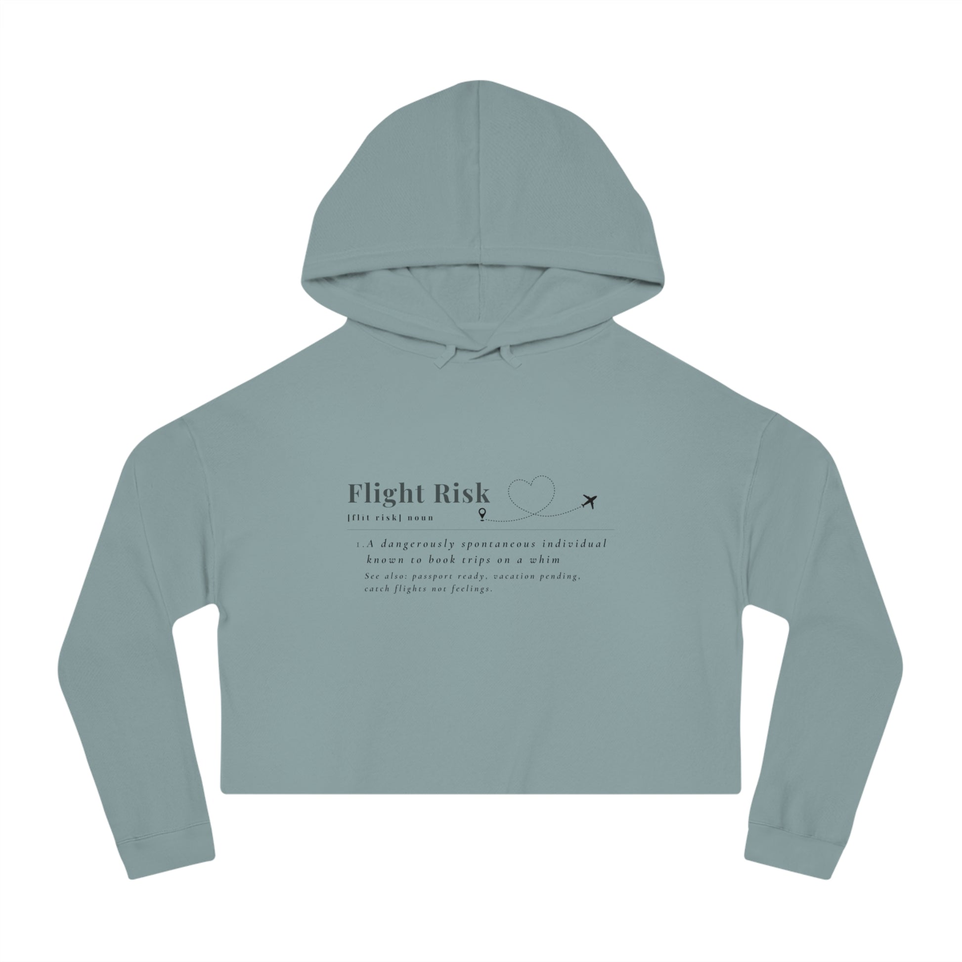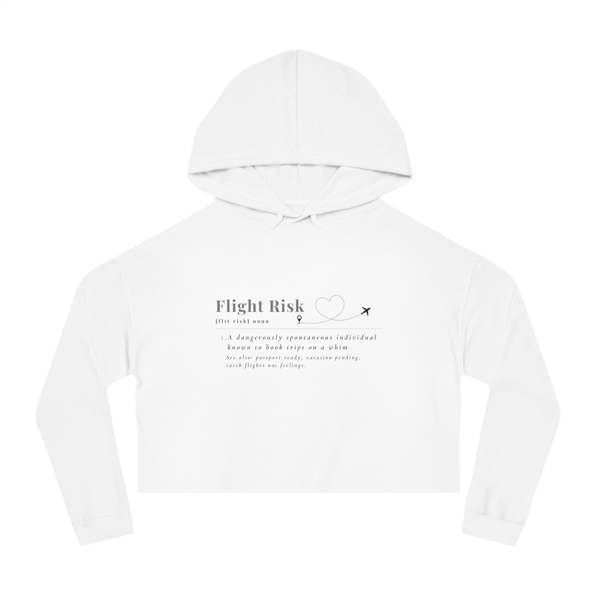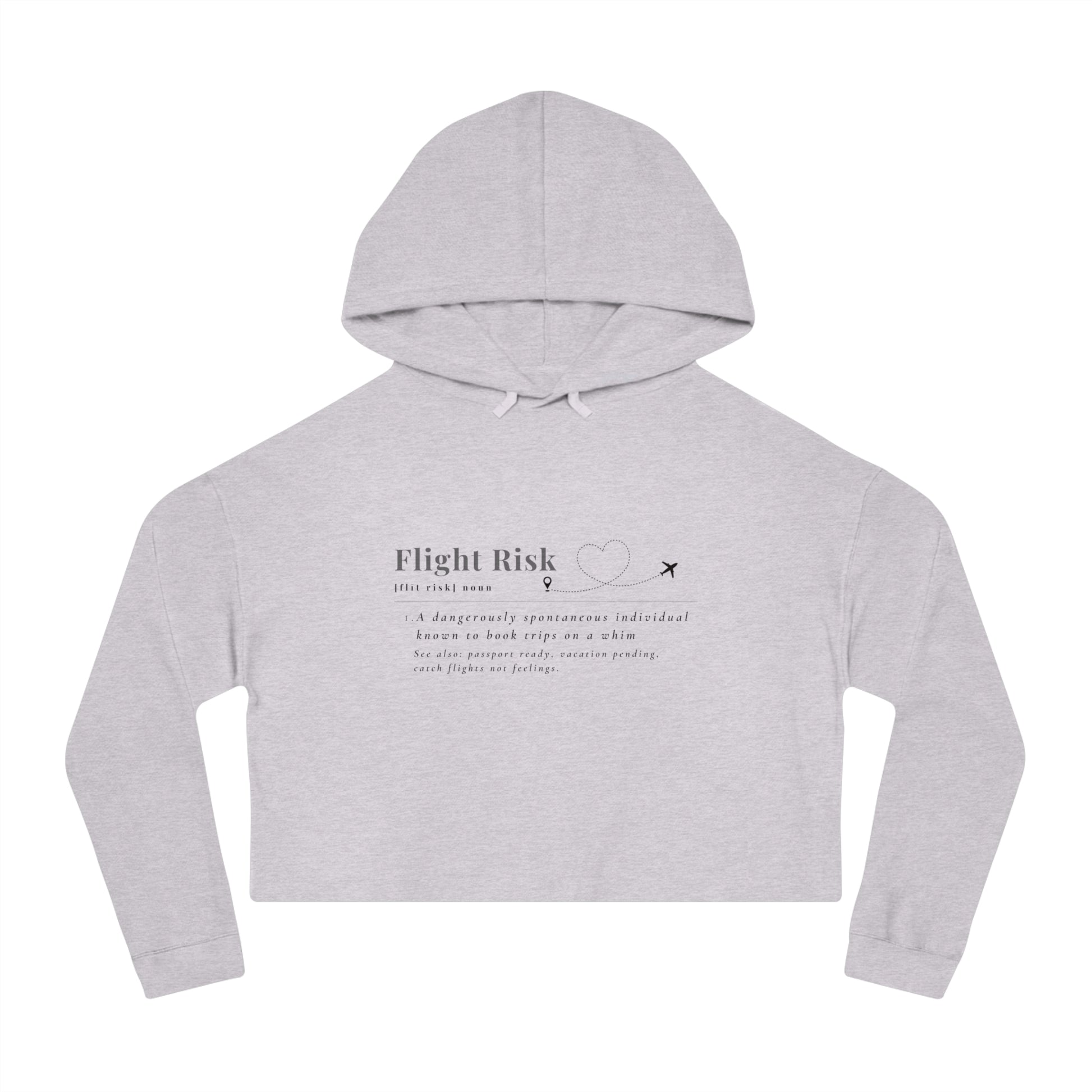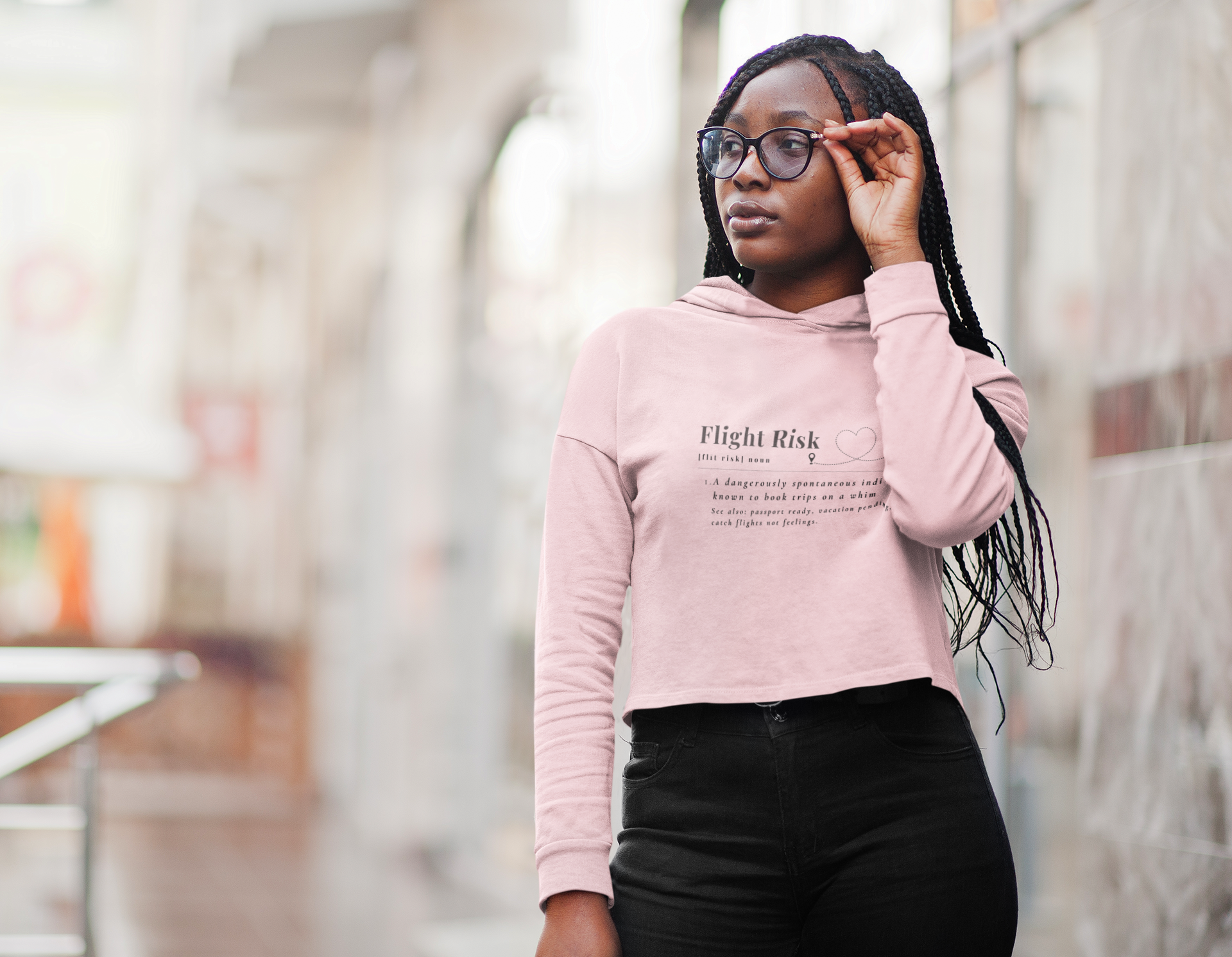 This one’s for the girls who keep a carry-on half-packed and a passport within arm’s reach. The Flight Risk cropped hoodie defines that wanderlust energy with a cheeky dictionary-style vibe that makes it clear: she’s not afraid to dip at any moment ✈️💋