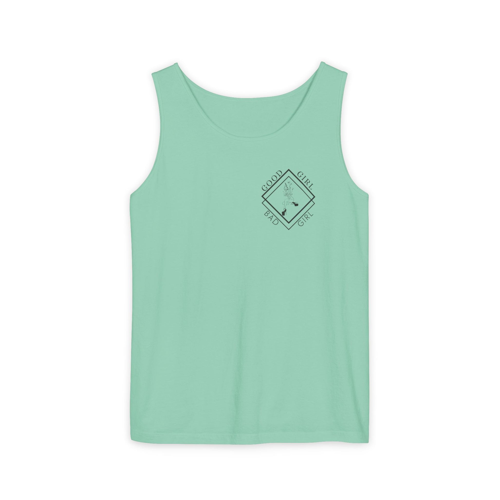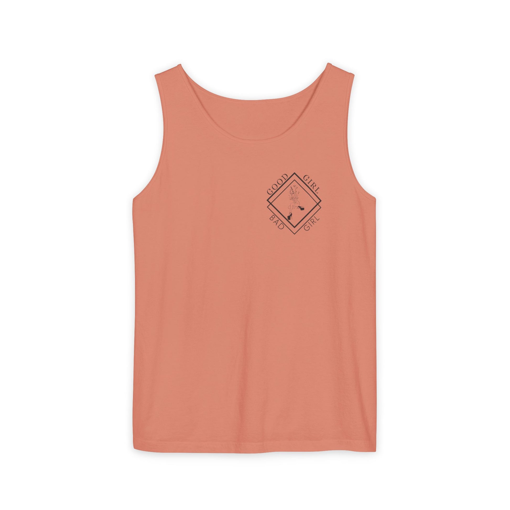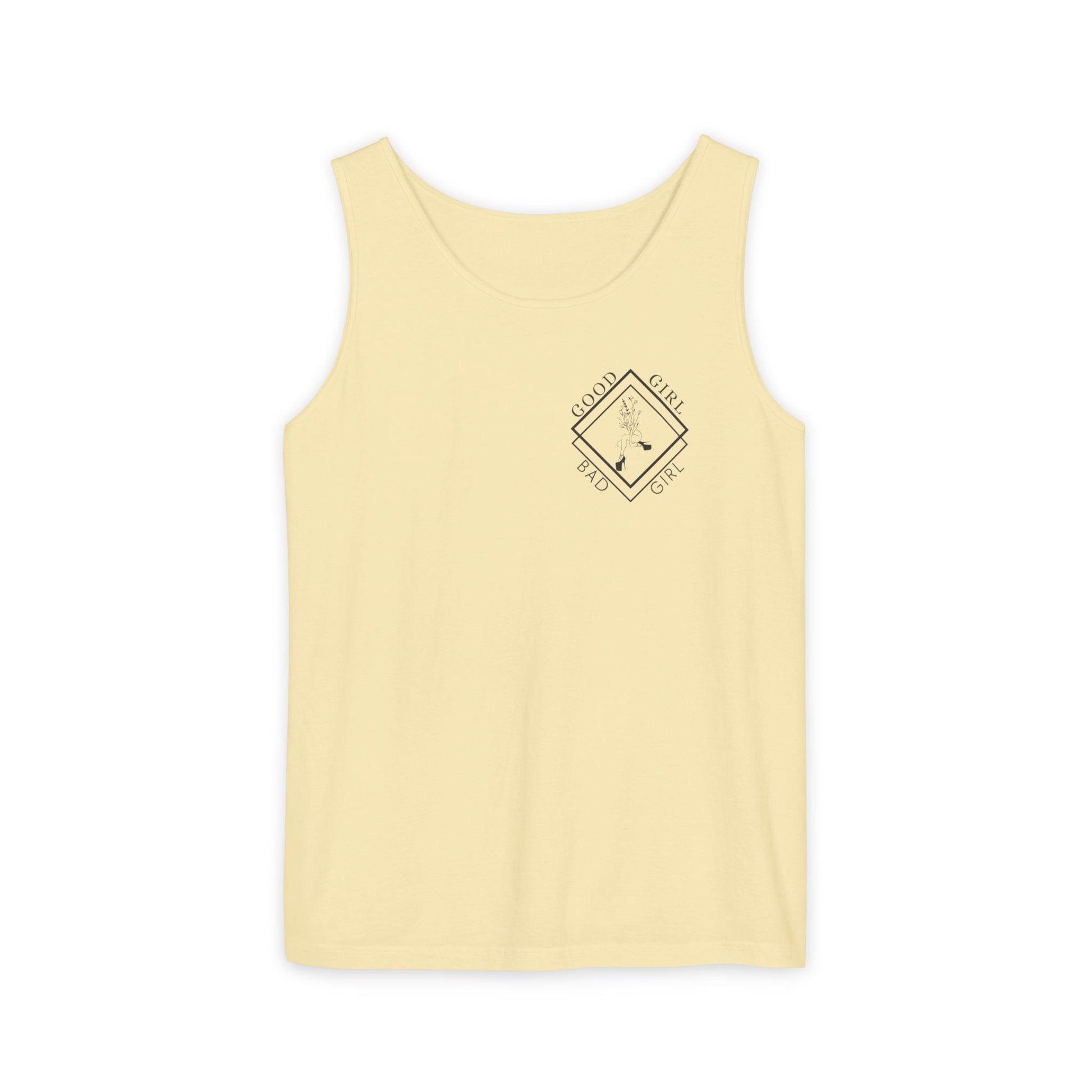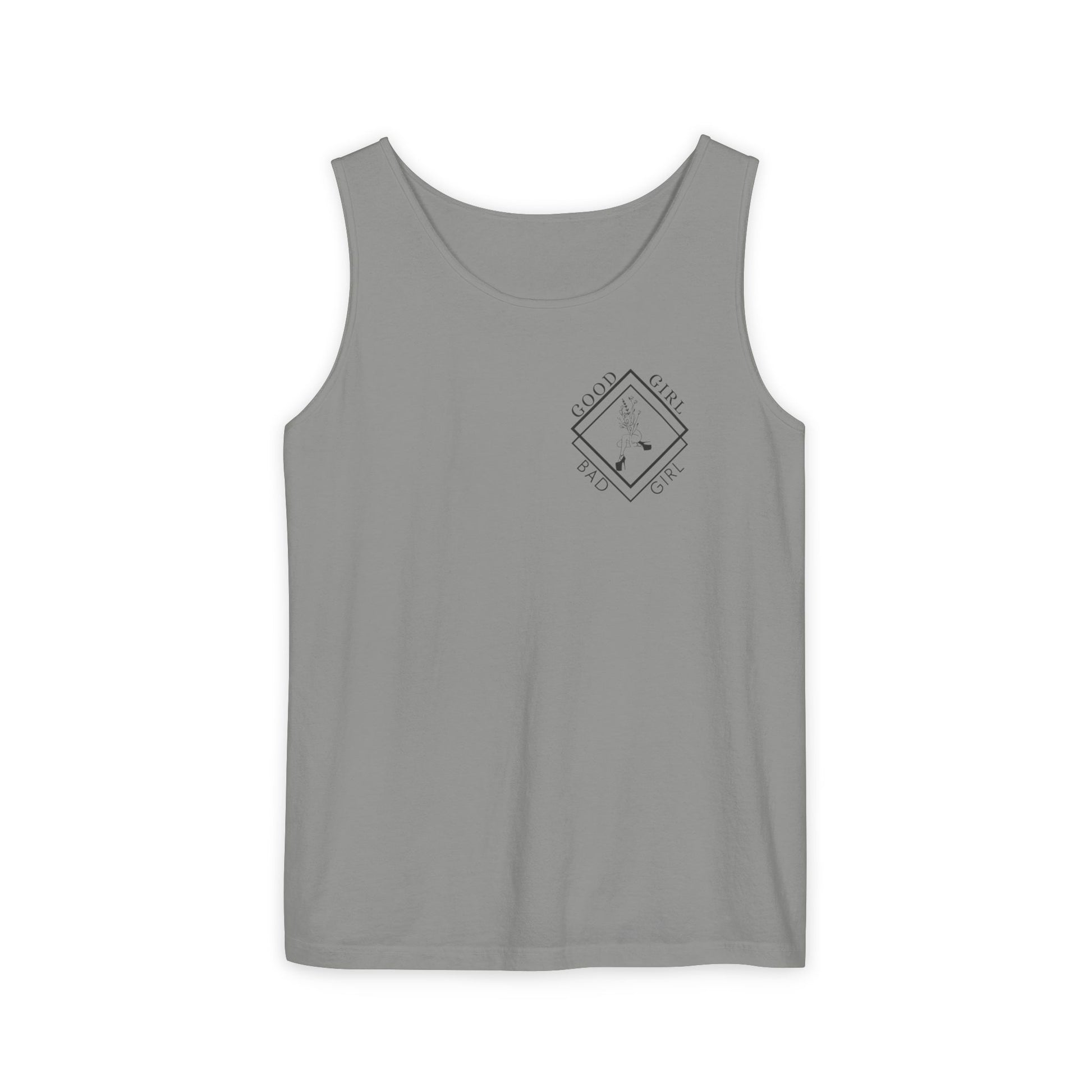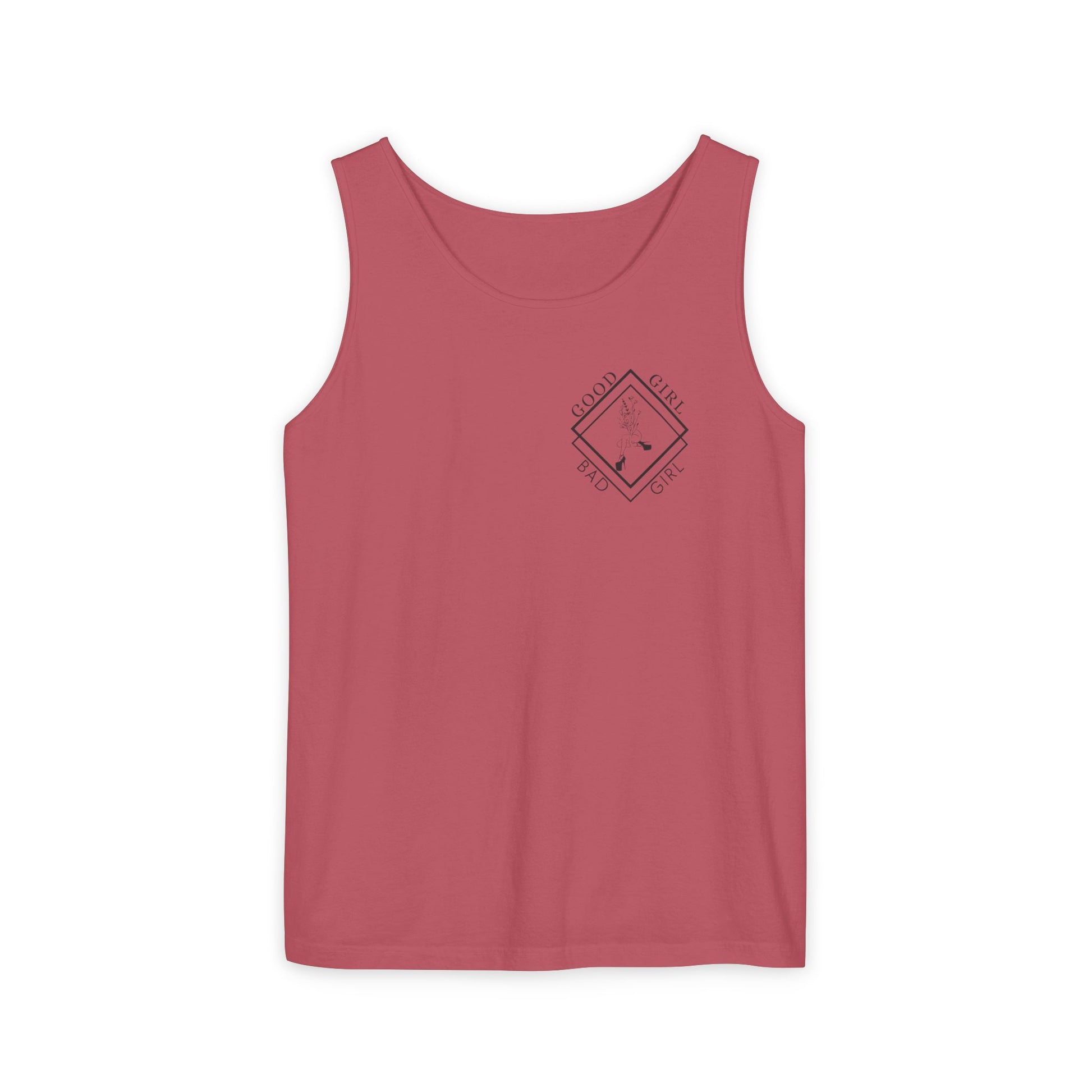 This unisex tank is made for those who embrace the balance—sweet, spicy, bold, and unapologetically themselves. Featuring the signature Good Girl Bad Girl logo, it’s the perfect everyday piece whether you're at the gym, lounging at home, or out making a statement.