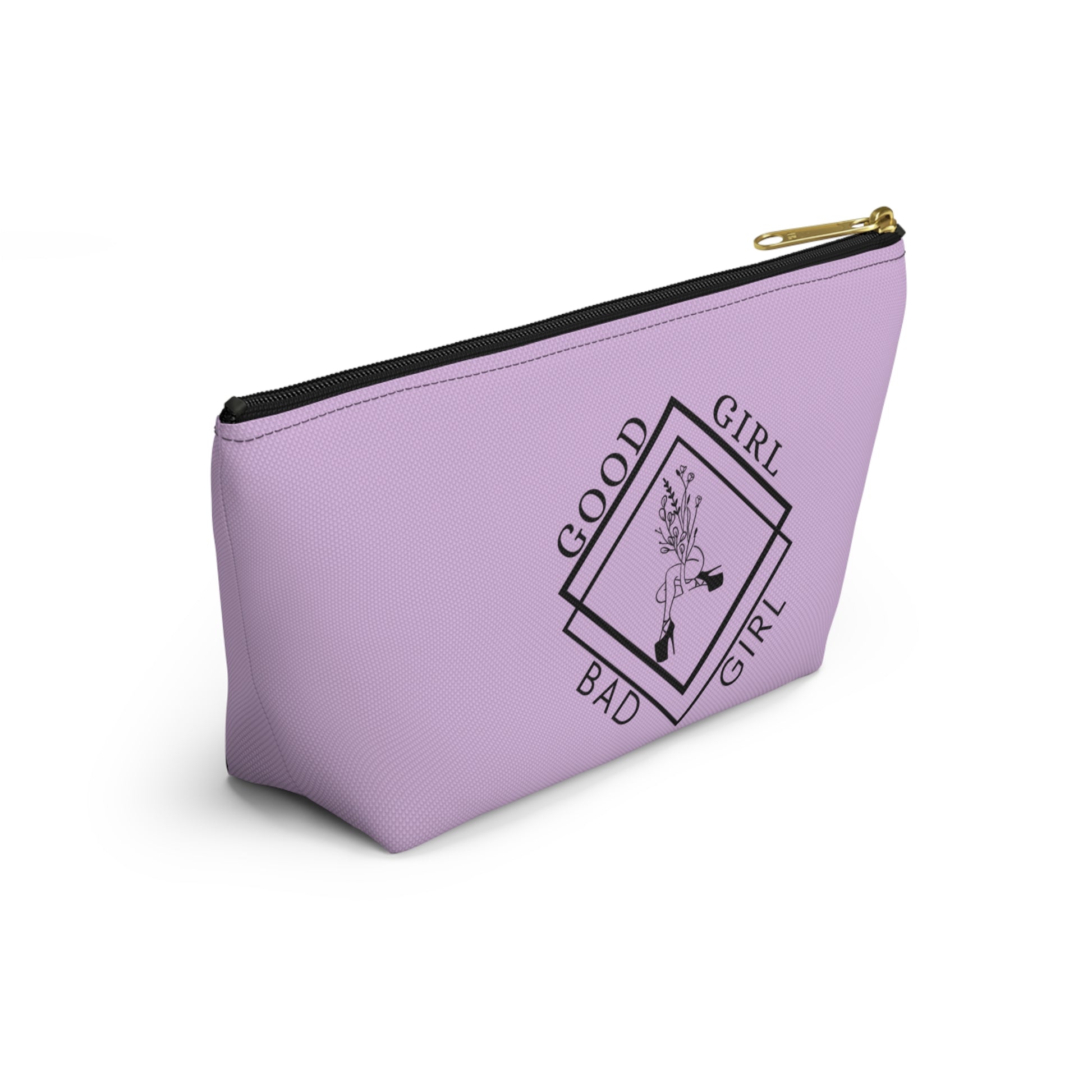 The ultimate throw-it-all-in-and-go pouch 💄✏️✨ Whether you're organizing your glam essentials, travel minis, or your favorite pens and stickers, this lavender cutie has your back. Featuring the signature Good Girl Bad Girl logo and bold vibes, this pouch adds a touch of attitude to any bag or desk setup.