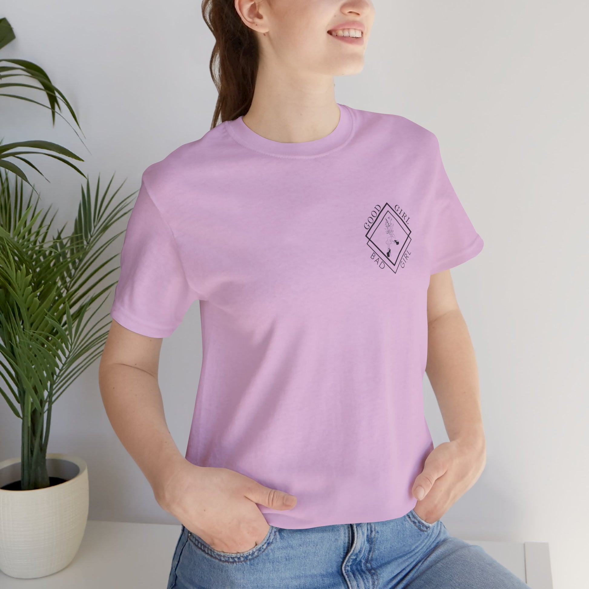 Wear the energy — bold, unapologetic, and a little unpredictable. This staple unisex tee features the iconic Good Girl Bad Girl logo, made for anyone embracing every side of their style.
